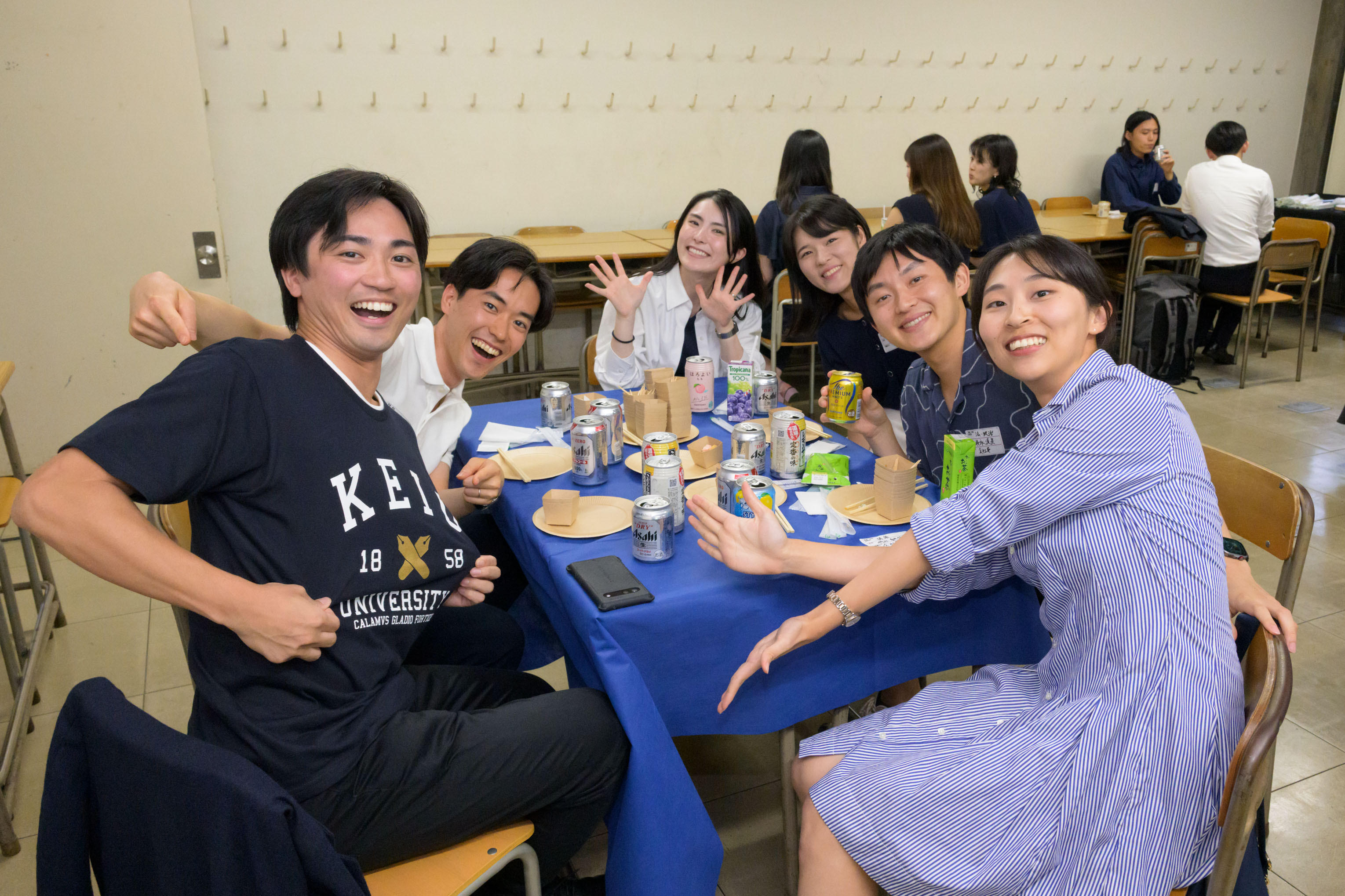 式典終了後には生協、山食、西校舎512、513、515、516教室での祝賀会が開催され、慶應公式グッズ抽選会などの催しが行われました。