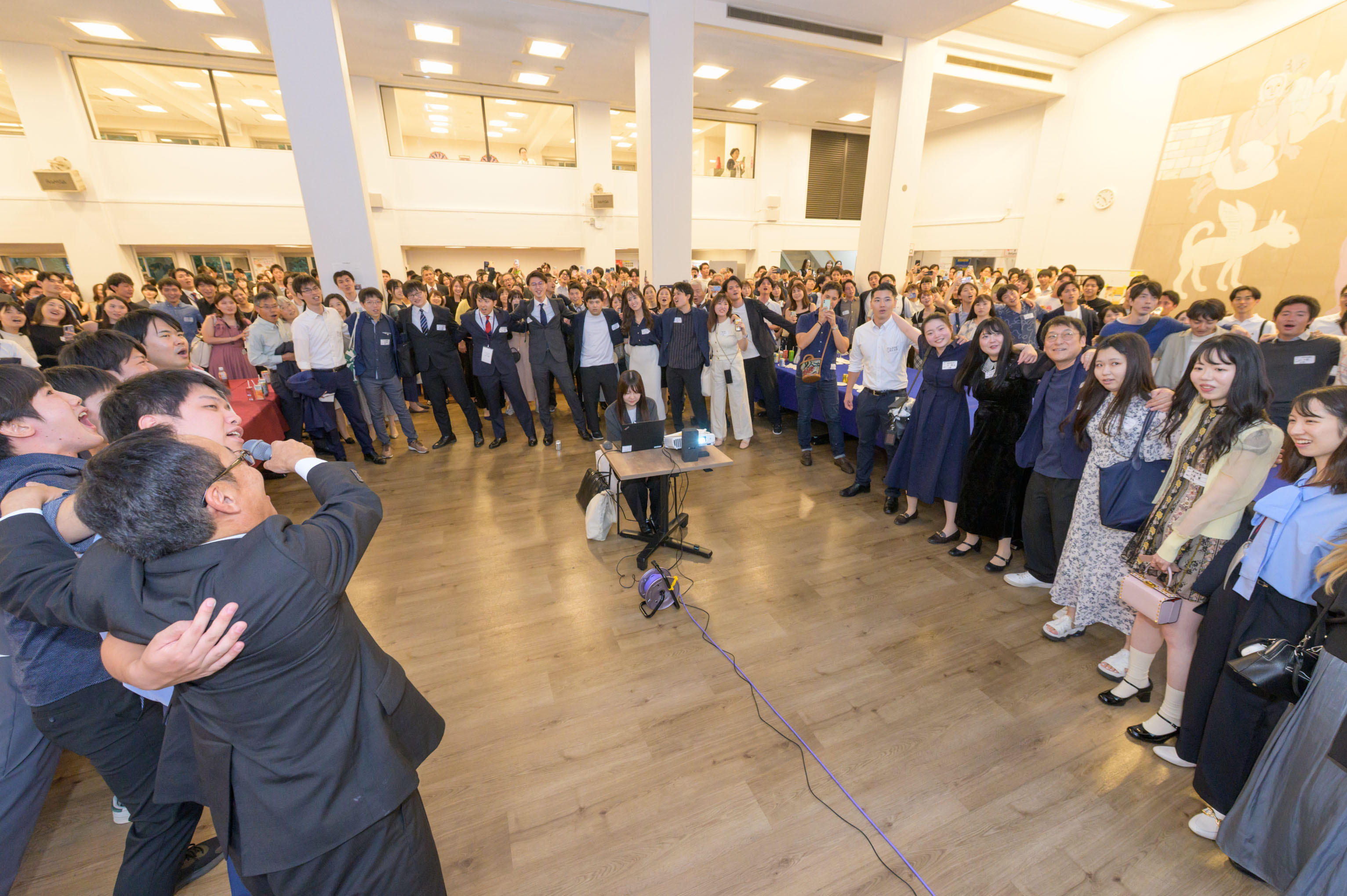 会場内では久しぶりに会う友人同士で旧交を温める姿が多く見られました。祝賀会の最後は参加者全員で若き血を斉唱し、活気あふれる中で会を締めくくりました。